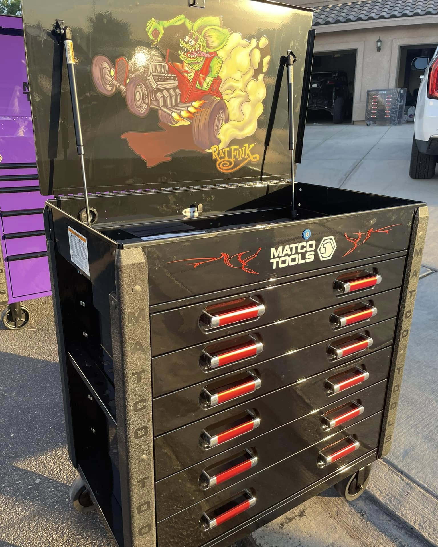 - ATTENTION DIESEL FANS. This BIG RIG tool cart features the iconic Rat Fink character who symbolizes the Hot Rod scene of the '50s and '60s